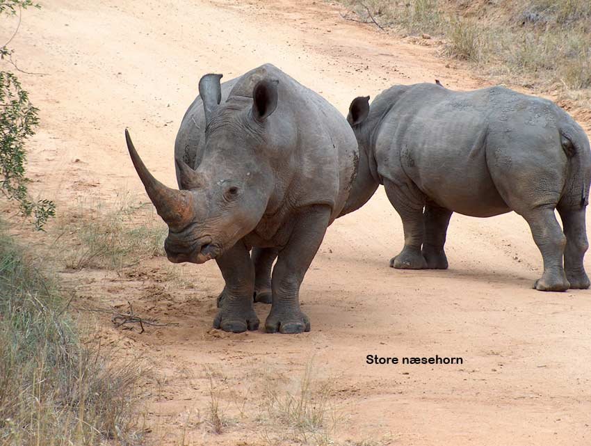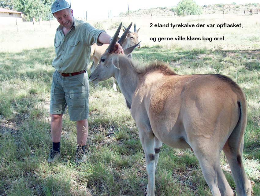 springbuck, blesbuck, mountain reedbuck, red hartebeest, impala m.fl. En anden hegning er på 1500 ha. Da indhegningerne er så store opfører vildtet sig som vildtet udenfor. Udenfor for hegningerne var der steenbuck, duiker, kudu, nyala, eland, black wildebeest m. fl.