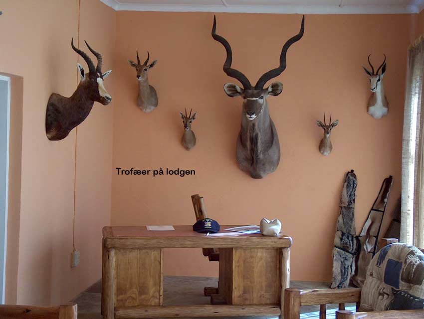 Nu i skrivende stund hjemme i lille Danmark sidder jeg kun og venter på at få trofæerne hjem. Man skal regne med mindst et halvt år inden de ankommer.. Jeg har næsten sat skruerne i væggen, og du er velkommen til at komme og se dem. De skal hænges op på min ”Afrika væg” i kontoret. Jeg glæder mig til at vise dem frem.