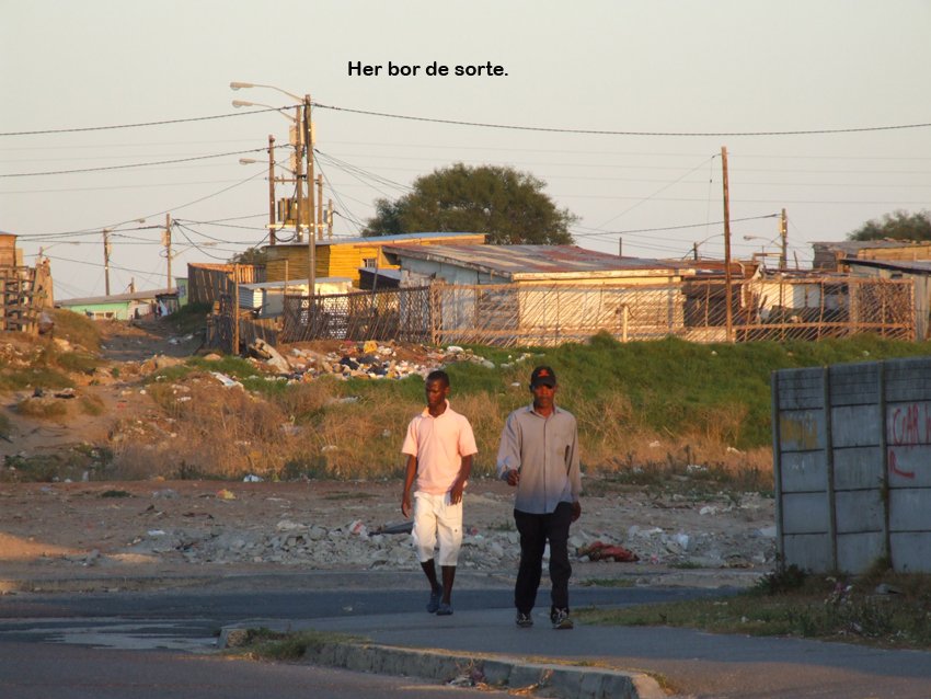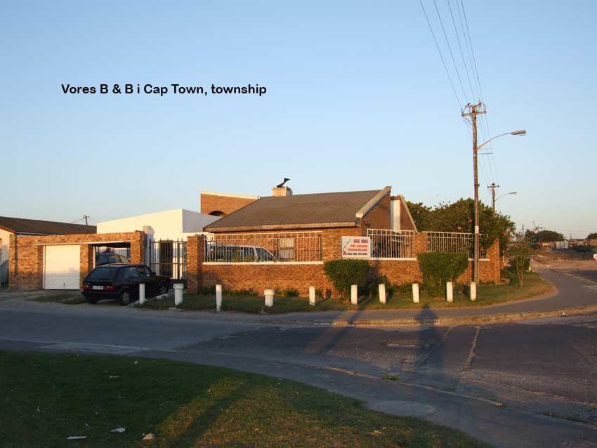 Vi kørte videre til Cap Town Lizi Guesthous i nærheden af lufthavnen. P. gr. a. vejarbejde havde vi svært ved at finde det. Vi ringede og blev hentet af Andrew, som arbejde der. Han var hvid, men ejeren var sort. Huset lå i township, sort kvarter. Det var et stort hus, de selv havde udvidet fra det oprindelige lille hus. Alt var fint og flot. Jeg havde udsigt til Table Mountain fra mit vindue. Vi gik en tur sammen med Lizi. Han var meget stolt over at vise os rundt. Vi besøgte hendes mor, et værtshud og en bottle store, hvoe vi købte øl.alle kiggede efter os. Senere blev Per klippet hos den lokale damefrisør til megen morskab for alle.