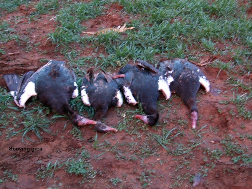 Vi øvrige tog på gåse jagt ½ times kørsel fra lodgen på en anden farm, hvor de havde en majs mark, hvor halvdelen var høstet. Der blev sat lokkefugle op. Vi var ikke lovet det store gåse træk, da det var først på sæsonen. Vi skød 4 spoving gæs.