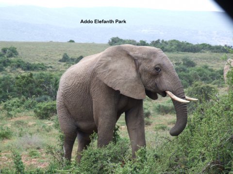 Vi havde booket en dame til at vise os rundt i Addo Elefant Park. Vi så mange elefanter, kudu, vortesvin, red hartebest. Det er et meget stort reservat.